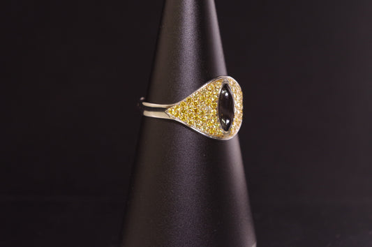 Yellow Diamond and Black Star Diopside Cat Eye Ring